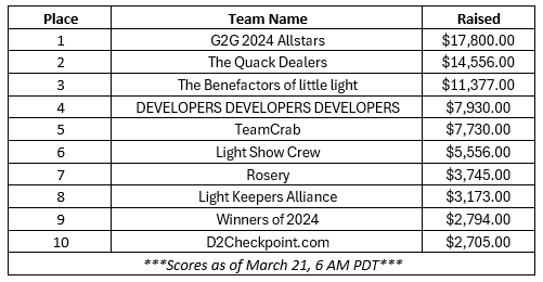 With only a few days left, we wanted to provide an update on the leaderboards for the Technical and Charitable categories. Remember, the winners of each category get an amazing life-size physical Allstar Vector Skimmer replica with the team's names engraved (one per team per category). Here is where we currently stand: