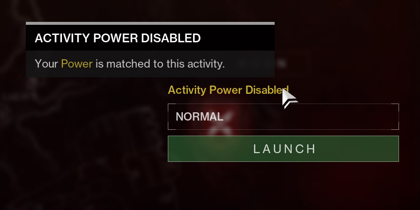 Your Power level will now be displayed next to the Activity Power Cap, right by the launch button, so you can easily determine how difficult the activity will feel.